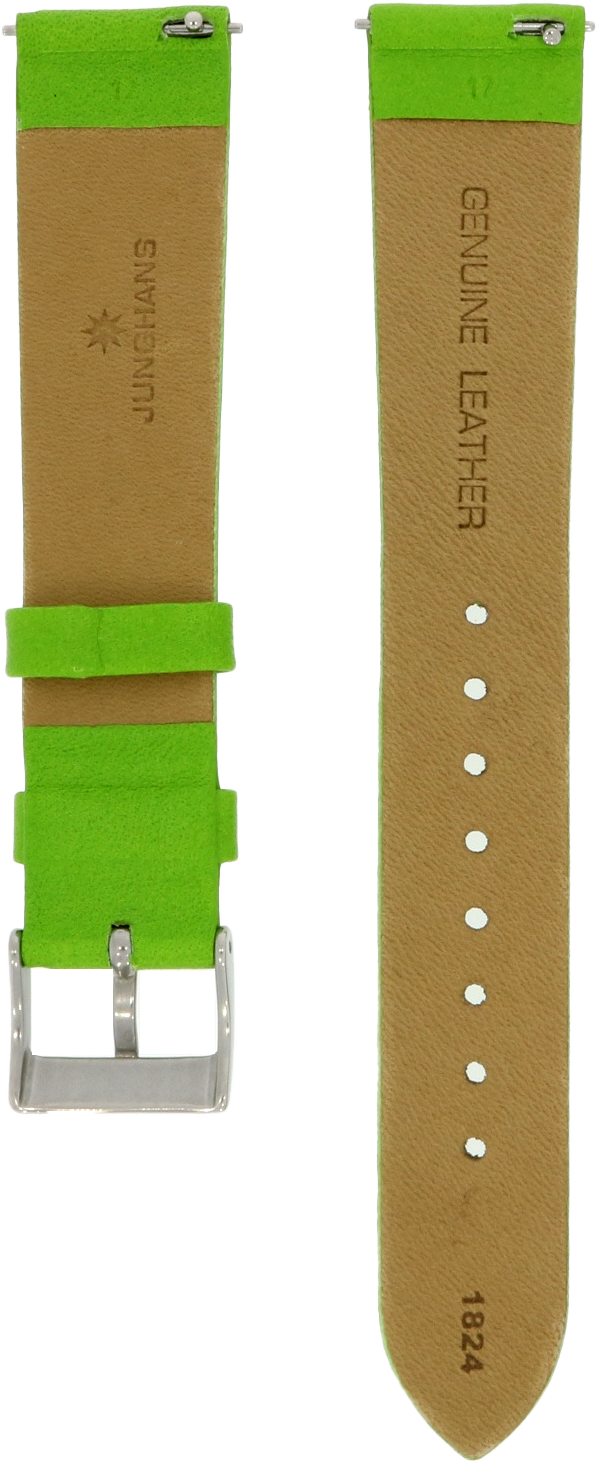 The Junghans Green Leather Strap 17mm is a high quality Leather strap that measures 17mm at the case and 15mm at the clasp. It was made by Junghans.