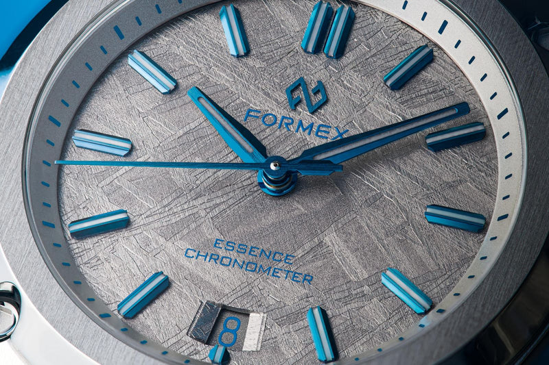 The Formex Essence ThirtyNine Chronometer Space Ghost Special Edition Leather has an amazing Meteorite dial, this is a natural material, making each watch unique! This first Essence 41mm model launches as the ‘Space Ghost,’ with only 200 pieces produced each calendar year.
