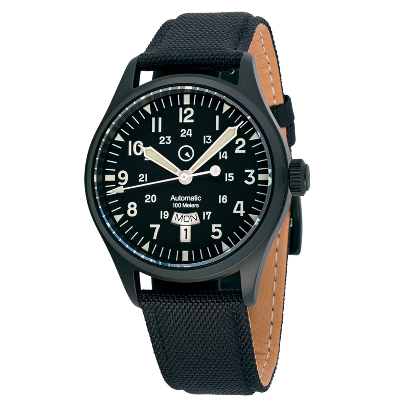 Islander Watch Mitchel "DAY-T" Automatic DLC Field Watch Black Dial #ISL-187