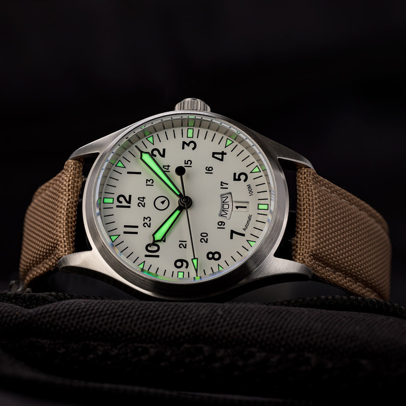 Islander Watch Mitchel "DAY-T" Automatic Field Watch White Dial #ISL-129 is an amazing, comfortable and practical field watch that you can enjoy on any adventure and sustain everything life may throw at you.