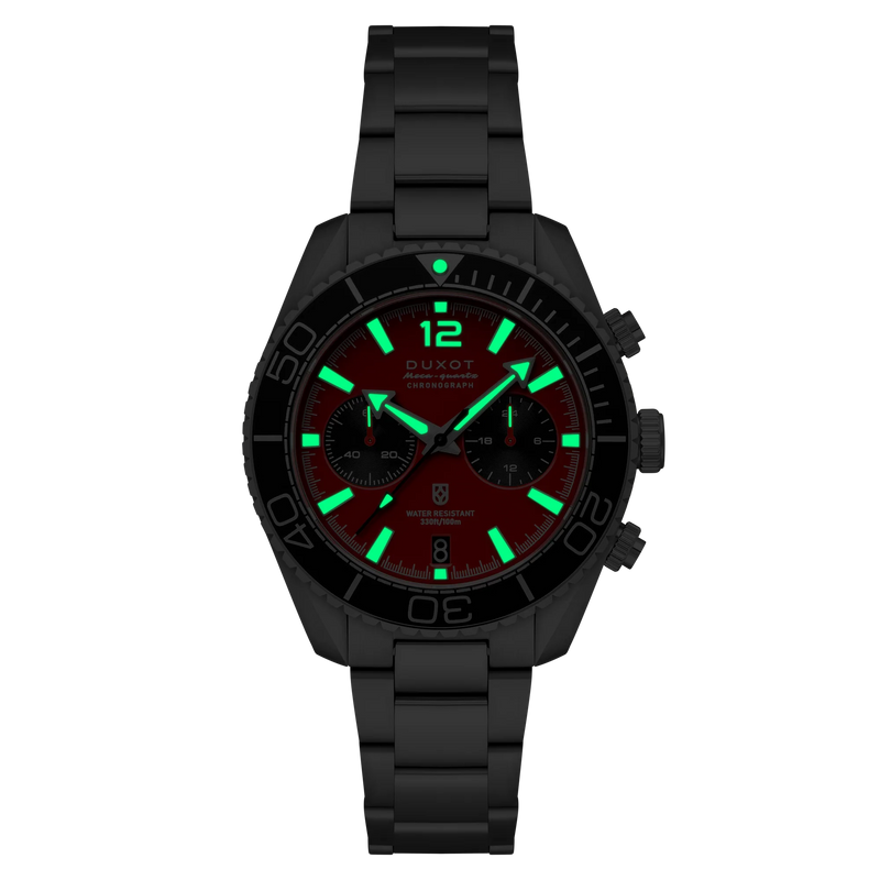 The Duxot Tiburon Chronograph Brick Red DX-2062-22 is an exciting chronograph watch that exbraces the quintessential vintage look. Under the hood is a a great Japanese Meca-Quartz Chronograph that gives the watch a smooth chronograph hand.