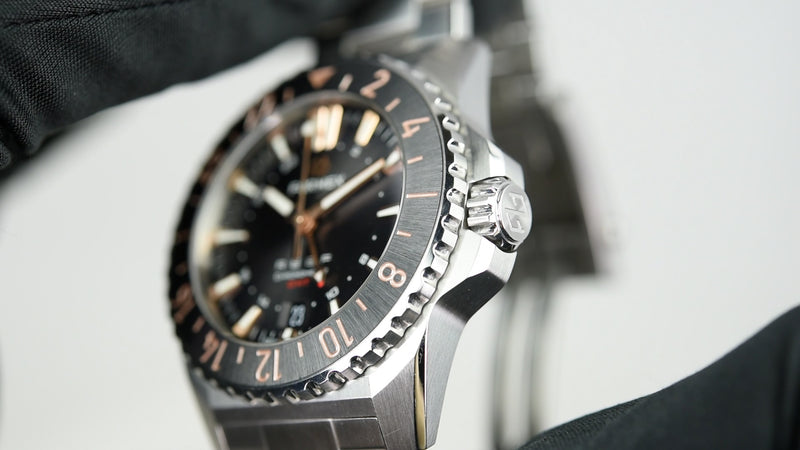 The Formex REEF GMT Black and Gold Ceramic Bezel (Pre-owned) is a watch in great condition watch that has barely been worn and comes with the full set with box and papers (02/2025).