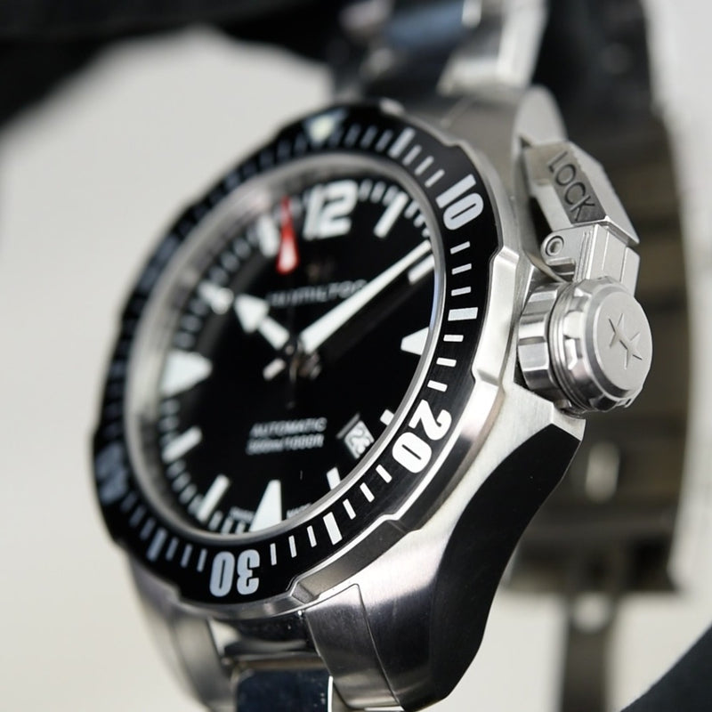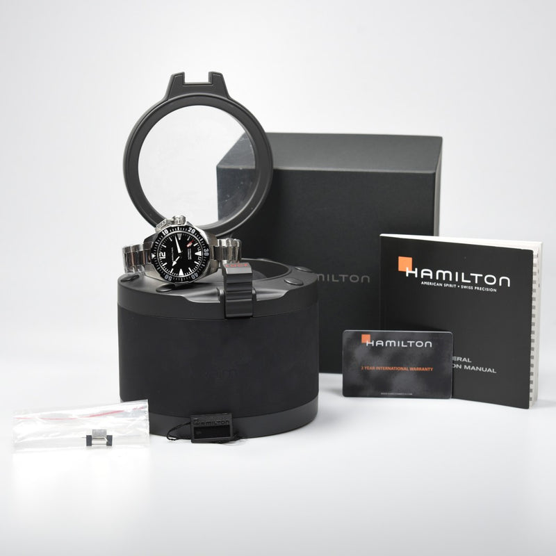 The Hamilton Khaki Navy Frogman Auto H77605135 (Pre-owned) is a watch in brand new condition with tags and foils and comes with the full set with box and papers (17/08/2016).