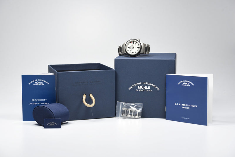 The Mühle Glashütte S.A.R. Rescue-Timer Lumen M1-41-08-MB (Pre-owned) is a watch in great condition and has barely been worn and comes with the full set with box and papers (14/12/2023).