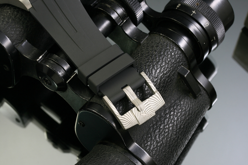 Under the hood you will find an automatic, renowned, Sellita SW200 (Swiss Made) movement. The glass is scratch resistant super domed sapphire glass. The impressive 300 meter water resistance of this watch is possible due to the helium valve, that you can see on the side of the case. The uni-directional 120 clicks bezel has a bronze insert (which will develop a unique patina). The case is made from Damascus steel, which is a combination of 304 and 316 steel and offers unique patterns throughout the case.