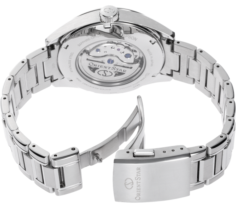 The Orient Star M34 F8 Date RE-BX0004L is a very special watch. To start, the watch itself. Inspired by the sparkling wonder of the annual Perseid meteor shower, this newly introduced flagship model of the Orient M34 collection is the ultimate blend of practicality, comfort and style. It's an Orient Star, so the case, movement and finishing are superb and things like sapphire glass (with an AR coating) and a fine steel bracelet come as standard. The movement, the Orient in-house F8N64, hacks, can be hand wound, has a power reserve indicator at 12, helping you track its 60 hour power reserve.On the back of the watch you'll find a viewing window, through which you'll be able to see the back of the movement.