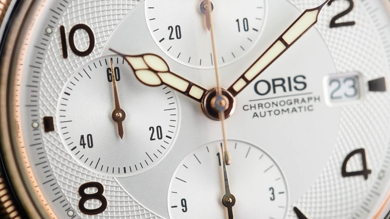 The Oris Big Crown Chronograph 01 674 7567 4361-07 5 21 52 (Pre-owned) is a watch in good condition with normal signs of wear and comes with the full set with box and papers (11/01/2014). The watch comes on a new Hirsch leather strap.