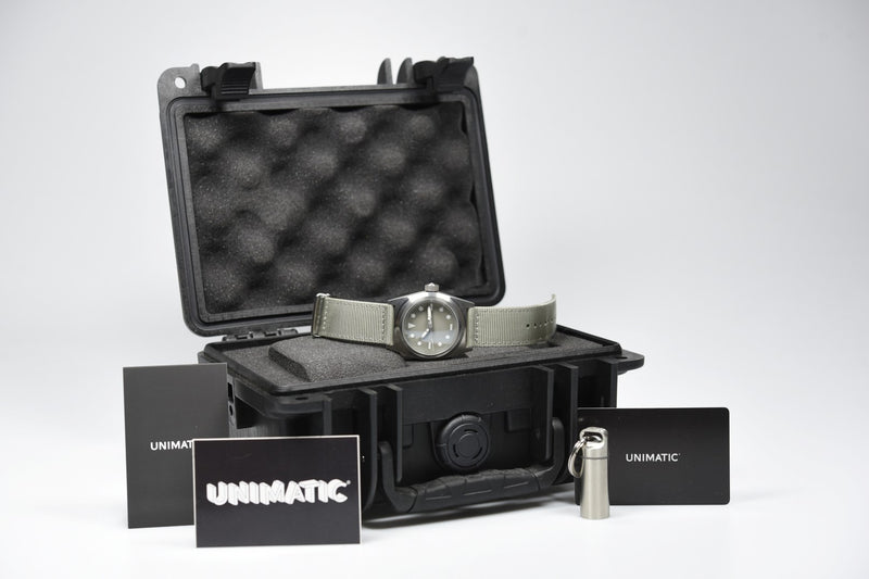 The Unimatic Modello Due U2-F (Pre-owned) is a watch in like new condition and comes with the full set with box and papers (no date).