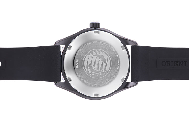 To start, this awesome diving watch has an in-house Orient Cal. F6722 automatic movement. It's suitable for nearly any outfit and nearly every occasion due to being very elegantly shaped, with a 40mm (39.9mm to be precise) and 46.5mm lug to lug case. You can wear the watch during swimming with its 200m water resistance (although it's not suited for air diving), but it will also look great with a suit or casual wear. It's a true all-rounder with a great design, great quality and a true mechanical in-house movement that also features sapphire crystal. This exciting watch features a durable black coating that complements the stunning grey dial beautifully, alongside a comfortable silicone strap.