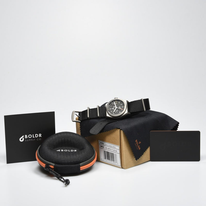 The BOLDR Venture Wayfarer Black (Pre-owned) is a watch in great condition and has barely been worn and comes with the full set with box and papers (01/2026).
