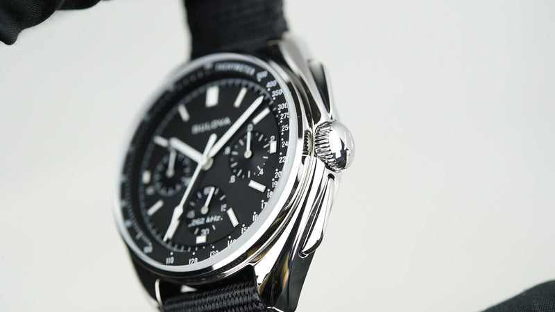 The Bulova Lunar Pilot Chronograph 96A225 (Pre-owned) is a watch in brand new condition with tags and foils and comes with the full set with box and papers (however not filled out).