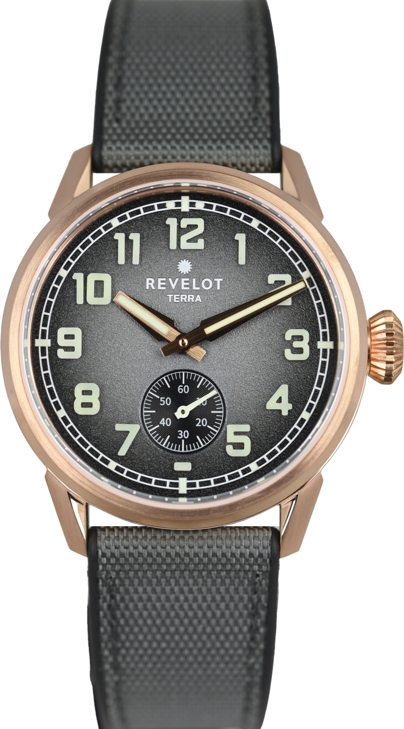 The Revelot Terra Fumé Black Sand Bronze (Pre-owned) is a watch in like new condition and comes with the full set with box and papers (07/03/2025).