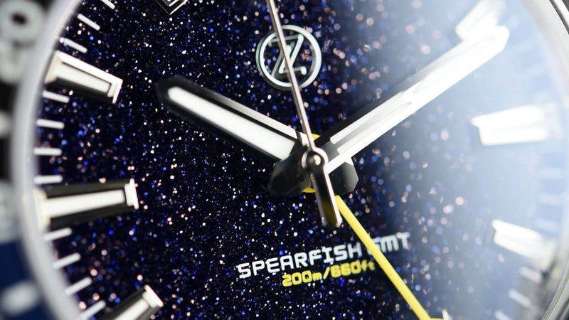 The Zelos Spearfish GMT Aventurine (Pre-owned) is a great condition watch that has barely been worn and comes with the box and warranty card (01/2023).